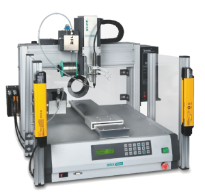 Seria robotów 9xxx (oraz pokrewne) to podstawowe i najbardziej uniwersalne maszyny z naszej oferty. Klasyczna głowica, wyposażona w grot lutowniczy i podajnik cyny porusza się wzdłuż osi x, y, z, ma jednak również możliwość obrotu wokół osi z. Pozwala to ominąć znajdujące się na płytce komponenty, można więc bez problemu wykonać luty niemożliwe do przeprowadzenia za pomocą fali selektywnej. Cecha ta, połączona z łatwością obsługi czyni roboty z tej serii najczęściej polecanymi przez nas rozwiązaniami. Są one świetnym wstępem do automatyzacji procesów lutowania ręcznego. Standardowym urządzeniem tej kategorii jest robot Quick 9494 dysponującego polem roboczym 400 x 400 mm. Posiadamy jednak znacznie więcej urządzeń o różnych parametrach, w tym roboty o mniejszym polu roboczym Quick 9394 (300×300 mm) oraz większym – Quick 9594 (500×500 mm). Jeśli są Państwo zainteresowani dodatkowymi informacjami, zapraszamy do kontaktu z naszym Działem Sprzedaży lub z Inżynierem Wsparcia Technicznego. Dzięki szerokim możliwościom dostosowywania maszyn możem dobrać odpowiednie rozwiązanie, dostosowane do Państwa potrzeb.